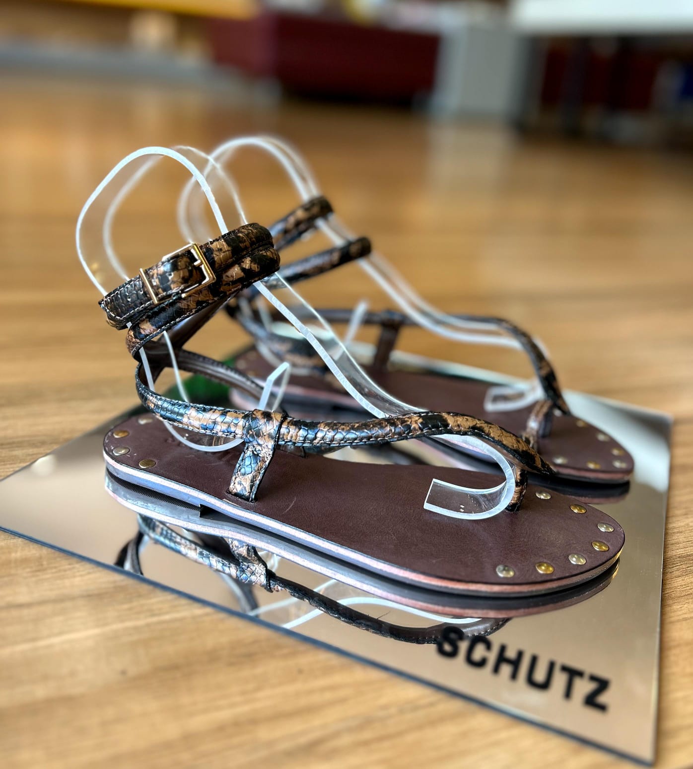 Foi-se o tempo em que as sandálias rasteiras eram apenas um item básico de conforto! Agora elas surgem cheias de sofisticação como protagonistas do look, especialmente se for uma versão como esta, que incorpora a *snake* como uma sinuosa e sexy tira! O acabamento animal print reforça o glamour do modelo e garante passe livre para te acompanhar nas melhores summer parties da temporada! Aposte!