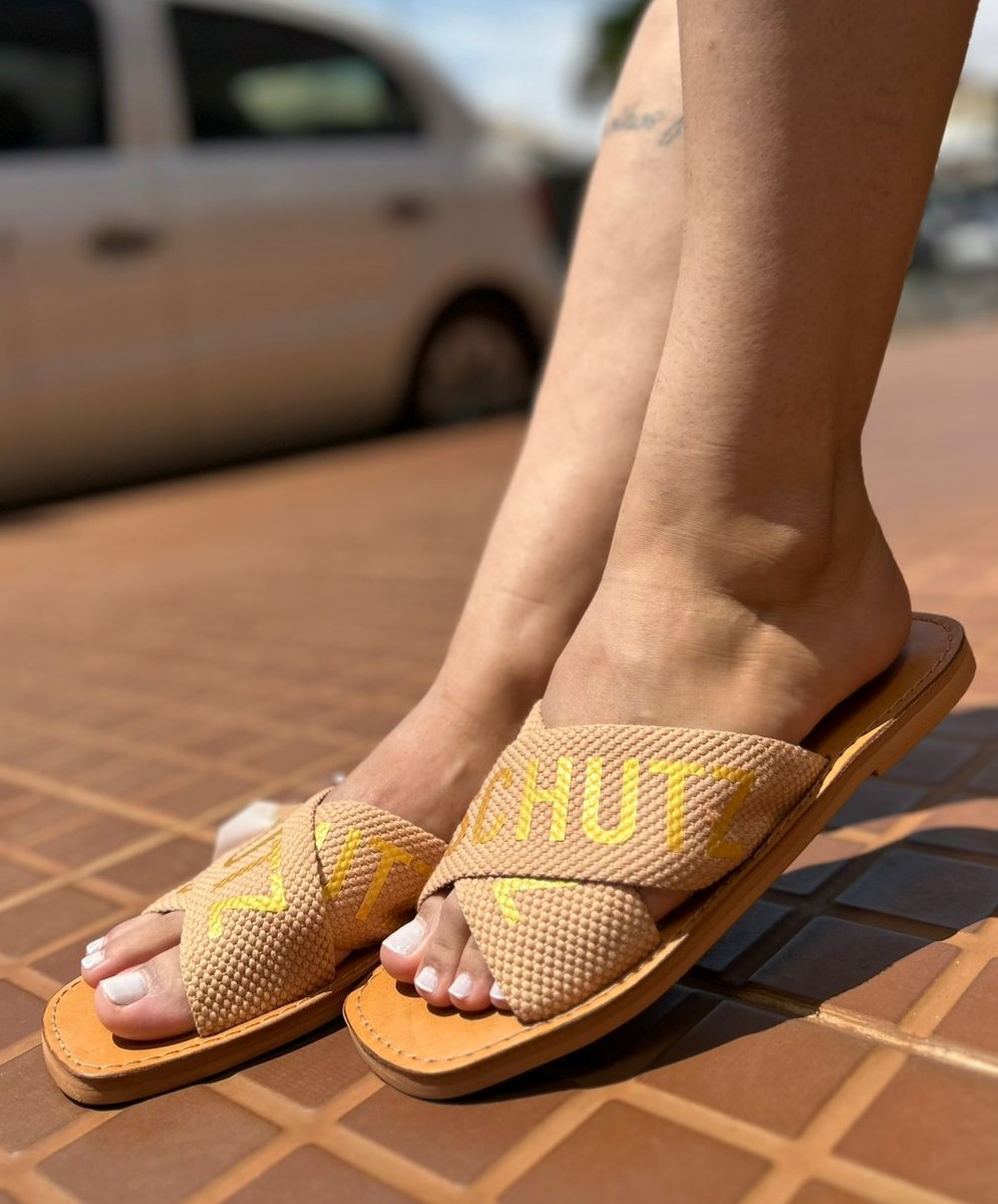 As grossas tiras em gorgurão trazem impacto imediato a essa sandália rasteira marrom, enquanto a aplicação da logomania tira o modelo do básico e imprime personalidade extra ao visual. Confortável, essa sandália de fácil calce vai ser a escolha perfeita para deixar seus looks casuais mais interessantes. Aposte!